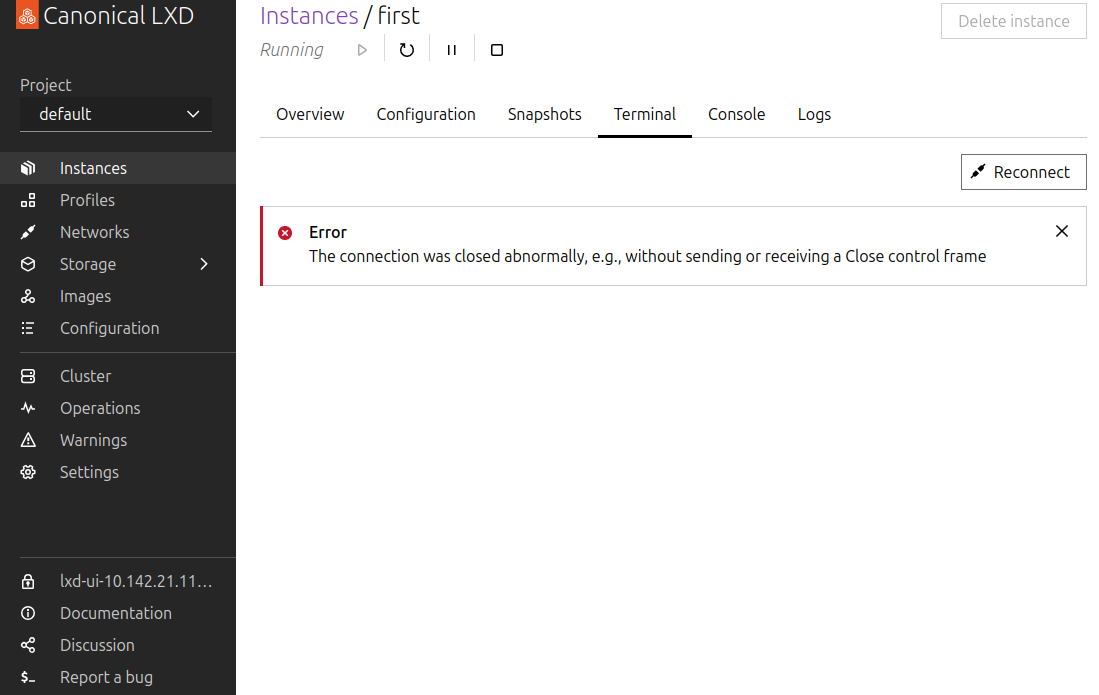 While the installation and initialization steps must be performed via the command line interface, a graphical interface (the LXD UI) is available for use after these setup steps. The LXD UI is accessed through your web browser.