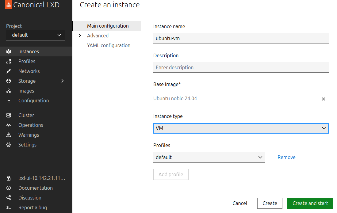 If you prefer to use the LXD UI, expand and follow the steps below.
